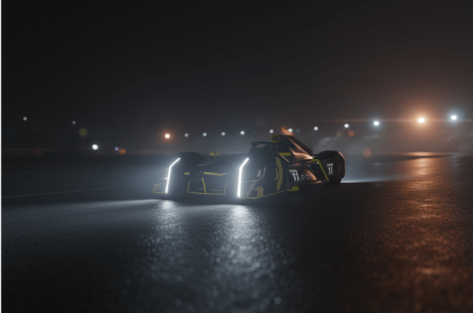 There are two turbines on the sides of the vehicle, which are designed to provide maximum traction and efficiency using the ground effect, reinforced by the diffuser. The car has active aerodynamics, which are aimed not only at performance but also at cooling the vehicle. The concept is rounded off by wheel covers, which are also designed to improve safety by preventing spray from being thrown up in wet conditions, thus providing better visibility than in Formula racing.