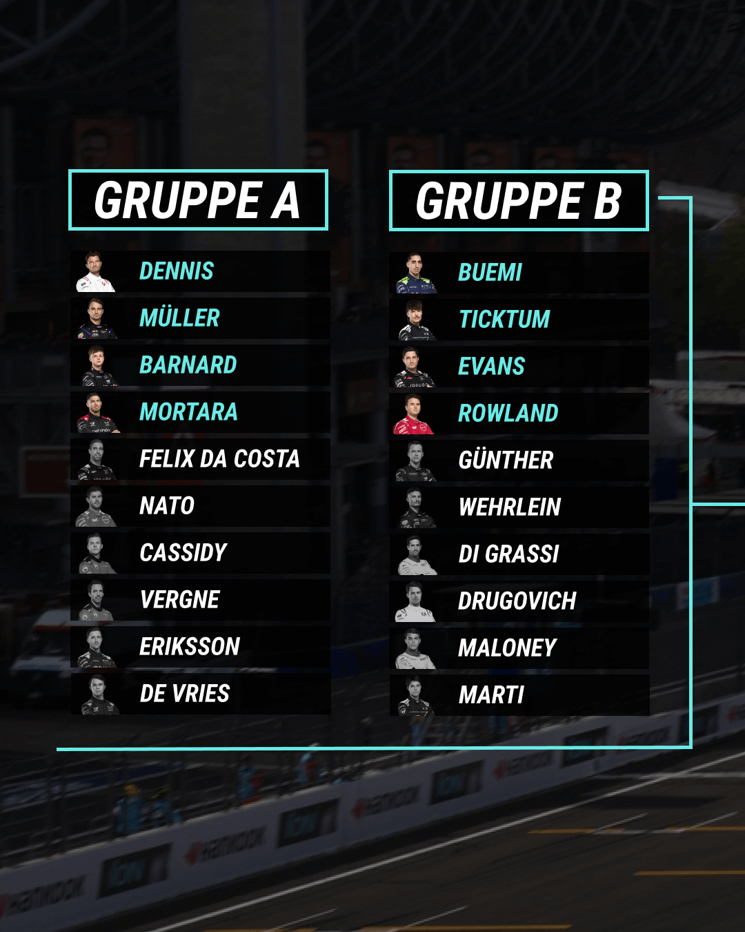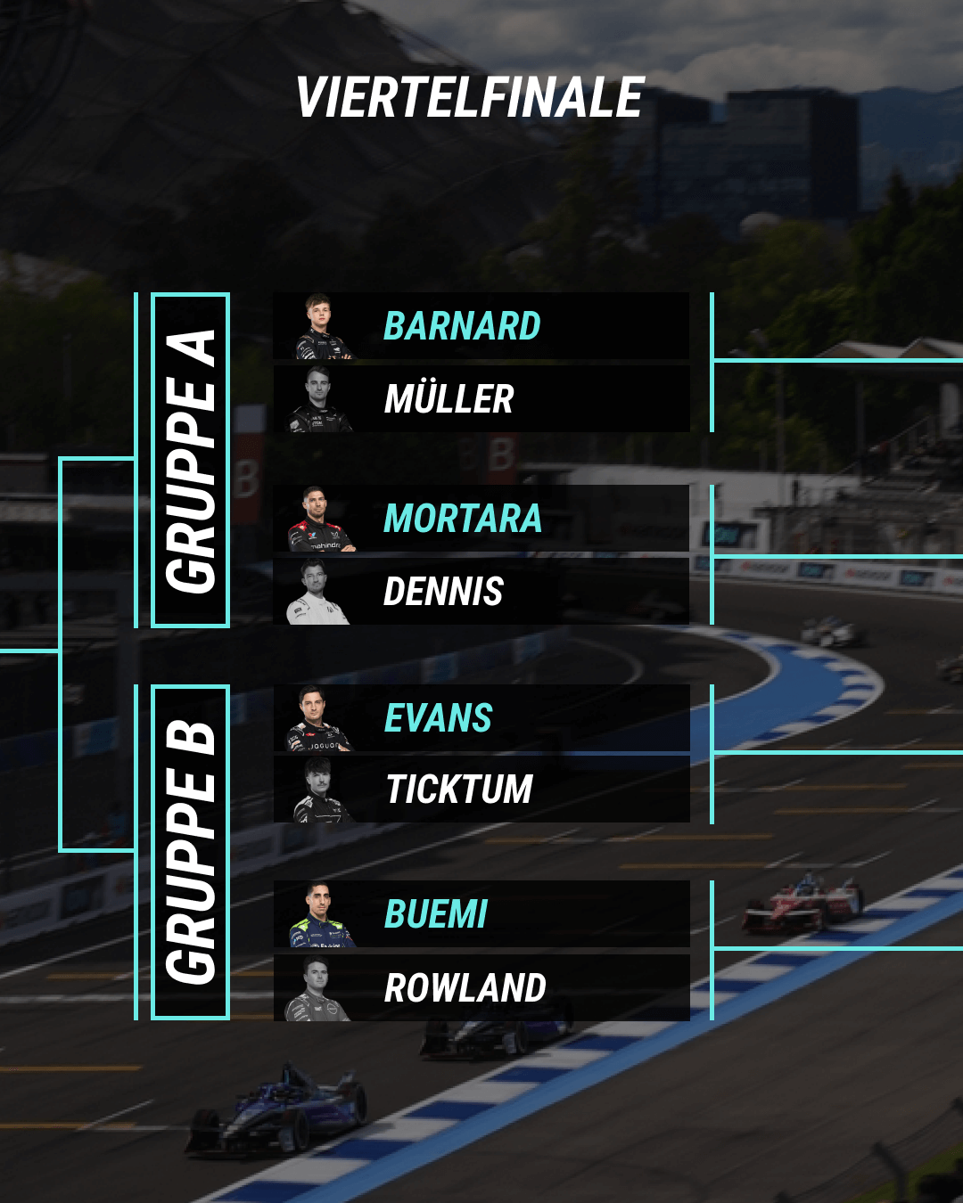 Shortly before the end of the race, Barnard made his presence felt: his lap time put him in third place, while Müller also improved his time and secured second place. Nato and Felix da Costa were thus prevented from progressing into the duels shortly before the end of the group stage. Dennis, Müller, Barnard and Mortara therefore progressed to the duels.