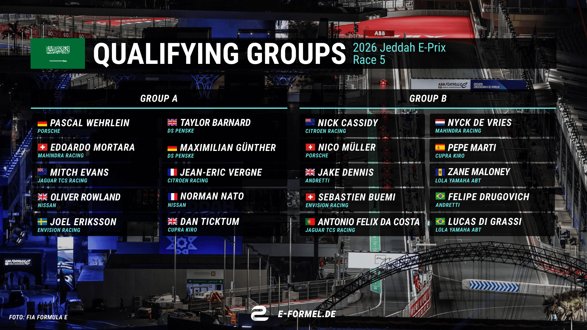 Formula E in Jeddah: The qualifying groups for Race 2 at a glance